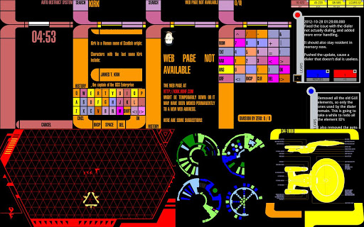 Currently it uses your device's sensors (so it is a working Tricorder in a sense) and detects nearby Wifi hotspots. Has a built in web browser which converts pages into LCARS format. An Alert Condition screen, an Okudagram (from the original movies) generator. You can use your Android device as a remote for a connected (via Wifi/3g) Windows PC. An auto-destruct timer (also shows the stardate) a periodic table of elements, a fully functional graphing calculator and various other animations from the show. Most screens (the non-interactive ones) can be used as a live wallpaper. It also supports Jellybean's DayDream mode, and homescreen widgets