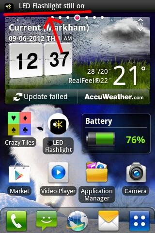 3. Reverse of Note #1 is also true, if LED is on from the Flashlight app (notification is there) Camera hardware cannot be used at the same time.