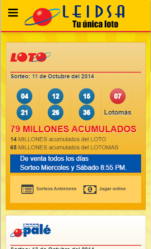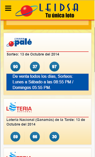 Aplicación oficial de la Lotería Electrónica Internacional Dominicana S.A, LEIDSA.