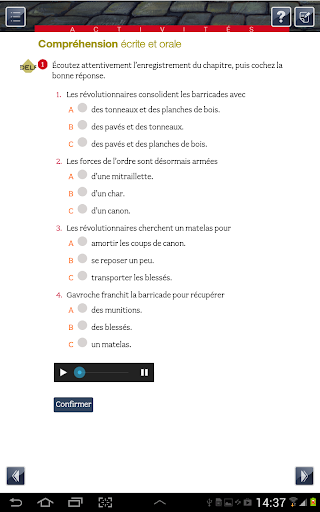 • des exercices interactifs de grammaire, de vocabulaire, de compréhension et d’expression écrite et orale ;