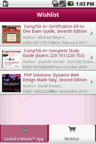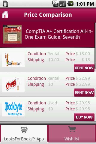 LooksForBooks for Android, is a fast money-saving search engine and real-time price-comparison tool for books! With its integrated barcode scanning technology you can now find a better price for any new or used book instantly. Save titles to a wish list, share the best deals with friends and much more! A must have app for college students and avid readers. Free shipping offered on most orders!