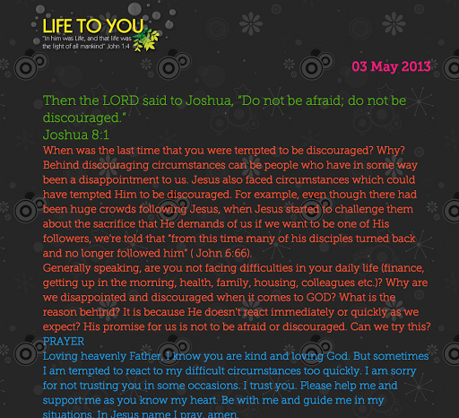 LIFE TO YOU is a Daily Bible Promise with an explanation and prayer.