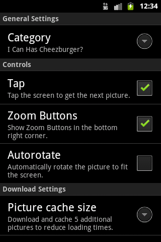 View lolcats and many other funny pictures from several pages. Just tap or drag the picture to get another one. If you want to, you can save all loaded pictures and view them when you are offline.