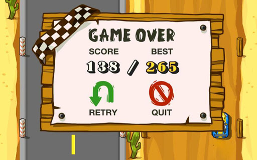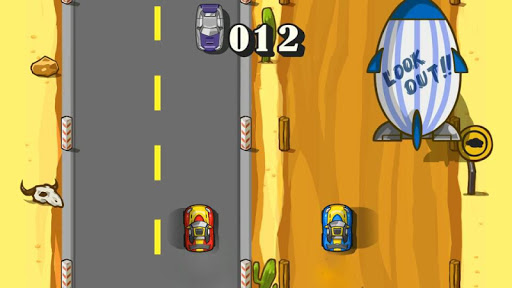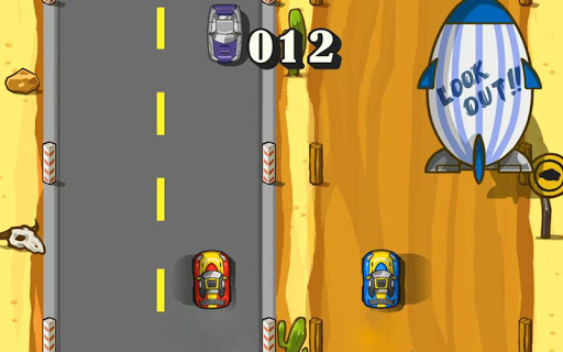 This game will challenge your reaction, two retrograding race cars are under your control, keep them alive and collect money as much as you can.