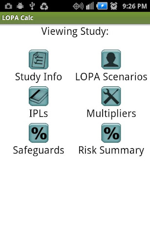 LOPA Calc allows you to perform a basic Layers of Protection Analysis study as used in process safety management. LOPA Calc uses a Study -> Scenario organization but provides a quick access screen to get to any scenario quickly.