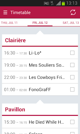 Guide incontournable du festival, l’appli permet de se retrouver dans les plus de 250 concerts, spectacles et animations. Tu y (re)trouveras les news, le programme, les horaires, le plan ainsi que toutes les informations pratiques le concernant. Organise ta visite, créez ta propre TimeTable et ne rate plus aucun spectacle!