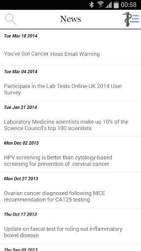 This mobile app loads and stores the Lab Tests Online-UK website's content on your mobile device, meaning you won’t be dependent on an internet connection to navigate to the information you need when you need it. However, when you have online connectivity, the mobile app will automatically update itself via the internet and will also provide additional content and images.