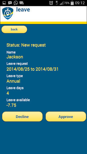 - Employee can request leave. An e-mail will be sent to the employer notifying them of the new request. The employer can then approve or decline the leave request