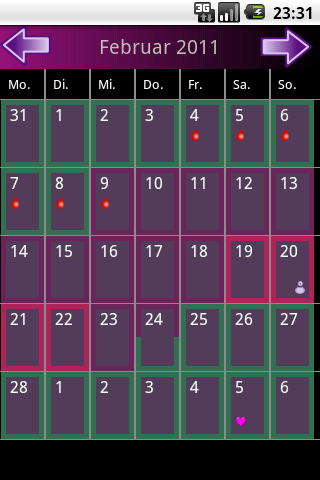 Lady Cycle determines your personal day of ovulation, fertility and menstruation based on the data you enter, using the rules of the NFP workgroup. It does NOT rely on a stereotype 28-day cycle template that leads to incorrect estimates! Neither does it rely on methods which are considered to be unsafe such as the calender method (Knaus & Ogino), the temperature method, or the cercival mucus method (Billings).
