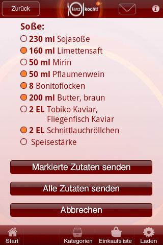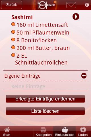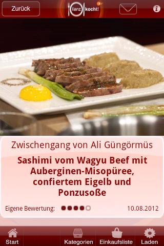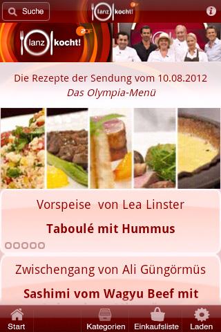 Nach Installation der App und einer umfangreichen Rezepte-Aktualisierung (ca. 3 MB) haben Sie Zugriff auf die Inhalte aller "Lanz kocht!"-Sendungen. Bitte berücksichtigen Sie, dass - je nach verfügbarer Datenverbindung - das Laden der kompletten Rezeptliste einige Minuten in Anspruch nehmen kann.