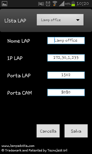 Applicazione che permette di utilizzare e configurare il device LampaDotta.