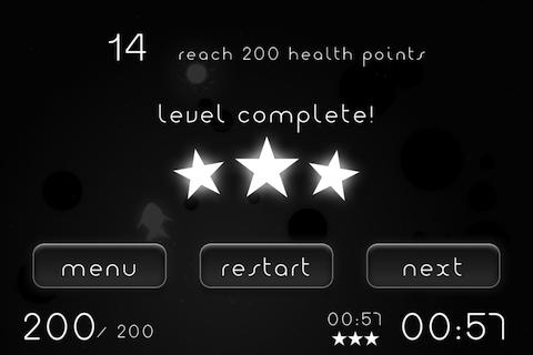 In each level you have to complete one of four objectives: survive for a specified amount of time; quickly follow a trail of rings; clear checkpoints; eat food with caution to reach a specific amount of health. Every level is different, be it food quantity, goo quantity, speed, size, movement patterns, health lost rate, number and speed of shadowfish. All these combined make each level unique.