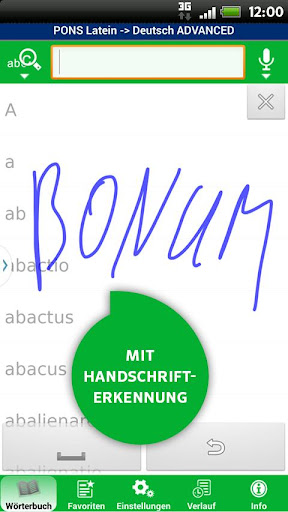 * Schreiben Sie das Suchwort ganz bequem in der eigenen Handschrift. Sie haben dafür den Platz des kompletten Displays! Von dort wird Ihr Suchwort als Vorschlag im Suchfeld übernommen.