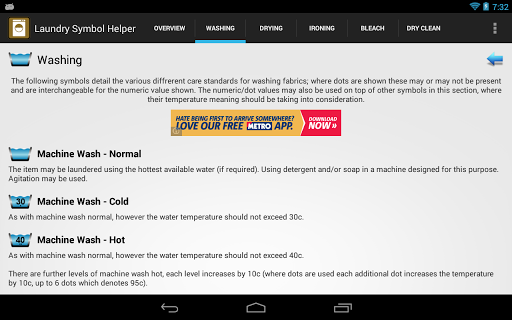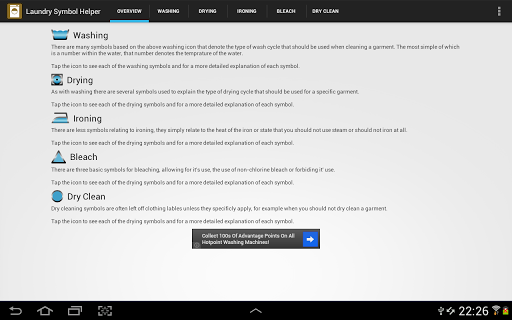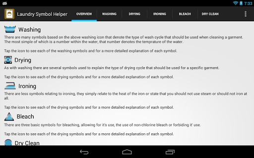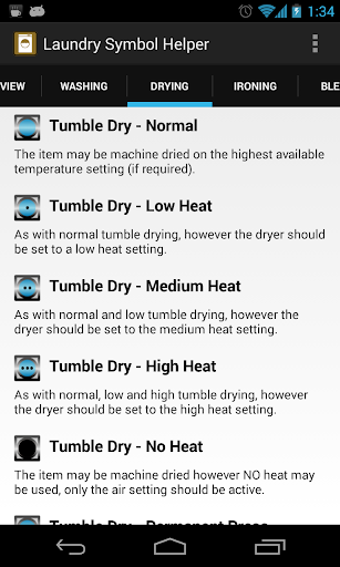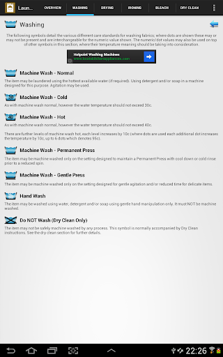 It is a handy application to help you identify the correct way to care for your washables; ensuring you do not over wash, dry, iron or bleach any product you might be cleaning. It currently lists 39 different cleaning symbols.