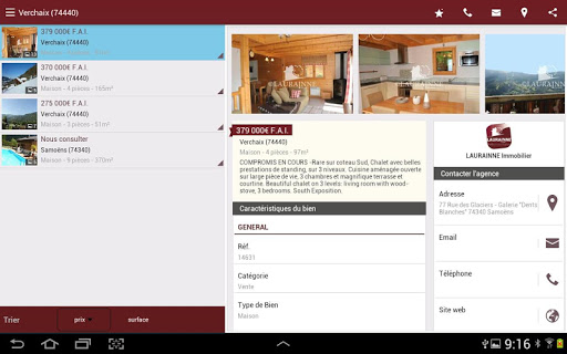 Cette application vous permet de faire votre recherche parmi toutes nos offres immobilières (chalet, maison, appartement, terrain...) en vente et en location depuis votre appareil mobile. Mémorisez vos recherches favorites afin de recevoir en temps réel les nouvelles annonces publiées.