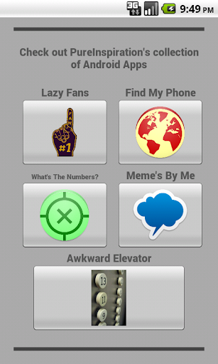 Awkward Elevator (funny pics/tweets): http://play.google.com/store/apps/details?id=com.pureinspiration.awkwardelevator