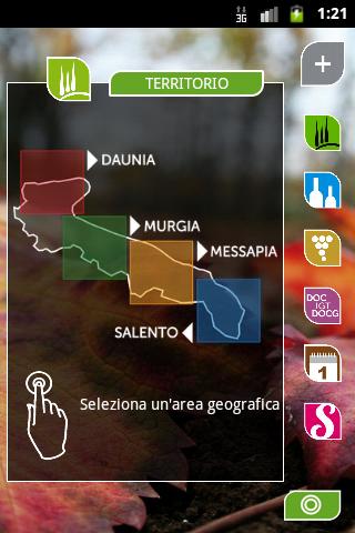 Consultando l’applicazione si compie un percorso tra vitigni (autoctoni e non) e vini premiati con importanti riconoscimenti quali i marchi DOC, IGT e DOCG, tante medaglie al petto dei contadini e degli imprenditori pugliesi, consapevoli delle potenzialità del territorio sul quale hanno puntato e hanno vinto.