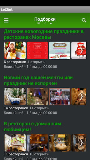 - специальные предложения от ресторанов партнеров для гостей LeClick