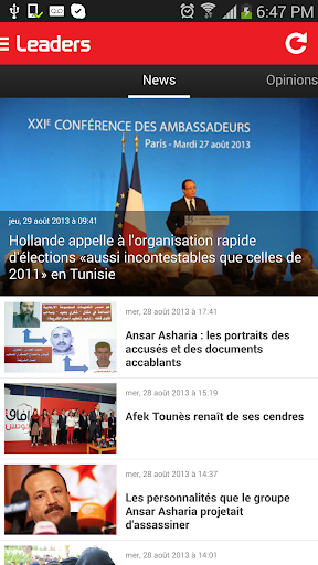 Avec Leaders Mobile, suivez toute l'actualité Tunisienne en temps réel sur votre Smartphone ou Tablette: