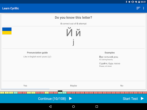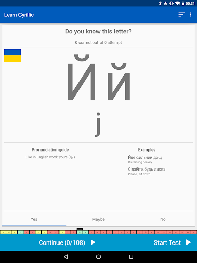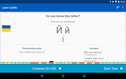 This app helps you to get started with learning Cyrillic alphabet by showing you examples, transliteration. Prove your skills with the helpful and engaging testing mode once you have gained confidence in your skills.