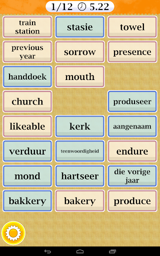 The purpose of the game is to match English words with their Afrikaans equivalents. Drag one word above its match to make a pair disappear. The game is won when all words are gone. The more you practice the more Afrikaans words you'll understand.