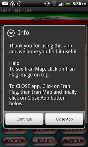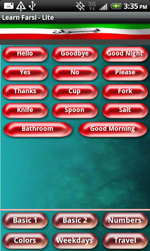 This app is ideal for learning basic Persian phrases. Save time and money by hearing & learning essential phrases like Hello, How Are you, Thanks, Goodbye and many more. The phrases are divided into multiple categories for easy navigation.