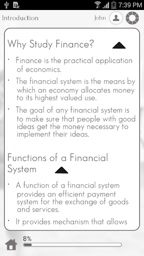 This app provides a quick summary of Finance via easy to grasp snack sized chapters: