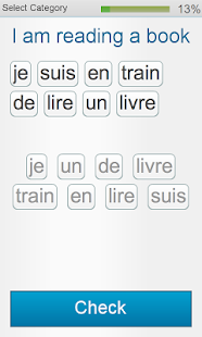 Learn French by recognizing words and images, finding the missing word, completing sentences and building sentences. With this app your'll learn close to a thousand French words and how to use them.