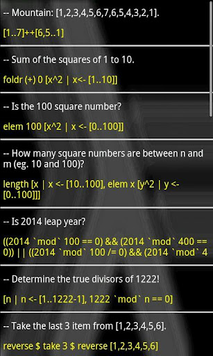 Simple, 1 line Haskell interpreter (via Internet) with useful examples (total: 32) based on tryhaskell.org's free API (many-many thanks to that great service).