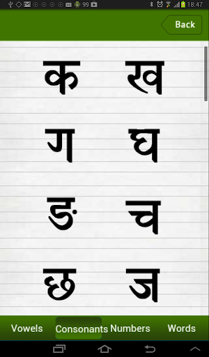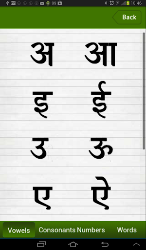 Learn HINDI provide smart learning package of Vowels(svar),Consonants(vyanjan), Numbers(0 to 10) and Hindi words ( Two Letter, Three Letter and Four Letter).LEARN HINDI also provides its user with an awesome material to build up the Hindi learning experience of its users.