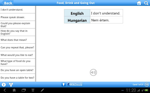 Designed for English Speakers. Tap a phrase and it will be spoken for you in Hungarian, anytime, anywhere! Meeting friends and co-workers from Hungary could be much more fun with this app. Focus is on everyday phrases and words.