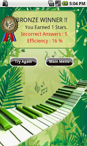 3. Speed check Mode - This is a 60 seconds madness game where the player looks at the cards and select the response quickly. This improve the reflexes of the player to quickly identify the notes.