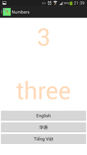 This is an app that teach how to read number in English, Chinese and Vietnam from 1 to 20.