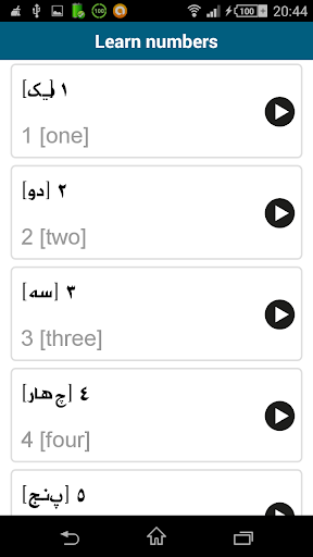 Learn Persian (Farsi)! "Persian 50 languages" (www.50languages.com) contains 100 lessons that provide you with a basic vocabulary. This free app has 30 lessons. With no prior knowledge, you will learn to fluently speak short sentences in real-world situations in no time.