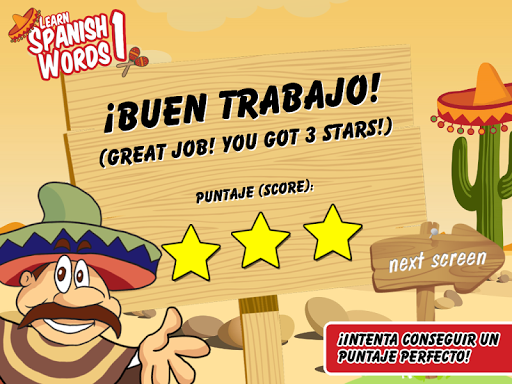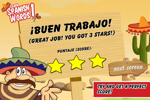 Through repetitive playing, you'll feel the joy of learning your first Spanish language words!