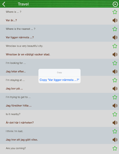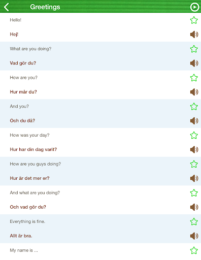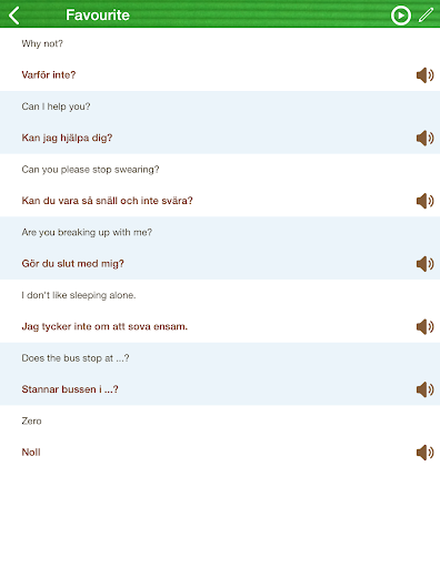 The Learn Swedish Phrasebook is a high quality and user-friendly Phrasebook app available on phone and tablet. And it is FREE! It will bring you an excellent and delightful learning experience!