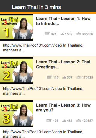 Learn Thai in 3 mins is a free and easy to use application for those interested in learning thai.