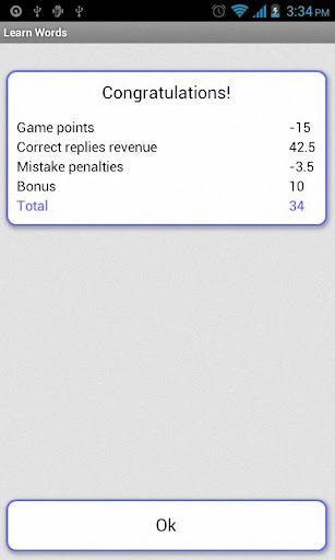 Tasks in LearnWords match the current level of the user’s active vocabulary and allow the gradual complication, with the improvement of knowledge. The form of a learning game used in LearnWords, can keep your focus on results, increasing the efficiency of memorizing words, preventing a sense of obsessional learning.