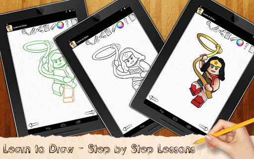 Exciting drawing: Lego Movie — an exclusive application that helps you learn how to draw Lego Batman, Lego Superman, Lego Wonder Woman, Green Lantern from Lego by simple lesson steps!