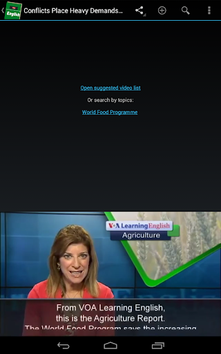 - VOA Special English videos using a controlled version of the English language. Including the programs TALK2US Conversation Practice, EIM: English in a Minute, American Stories, News Words, Education Report, Technology Report, Health Report, Economics Report, Agriculture Report