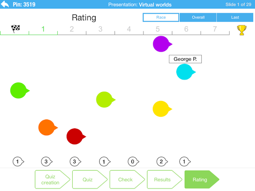 It is a unique tool for quizzes on lectures and classes. No need to prepare the quizzes ahead, you can do it in real time!