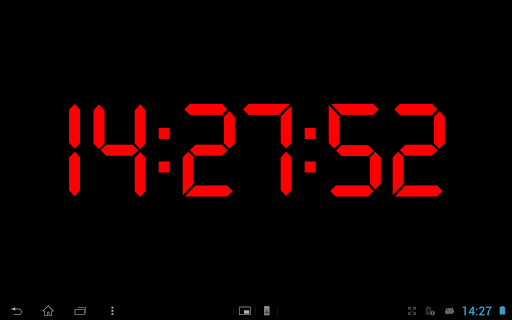 Semplice orologio digitale formato da led utilizzabile sia mantenendo il cellulare in verticale che in orizzontale, premendo il tasto menù è possibile uscire dall'applicazione. L'appllicazione non si spegne o ferma anche al termine del timeout dello schermo o al suo spegnimento, ma resta sempre attiva