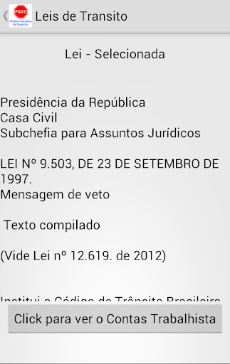 Este aplicativo foi elaborado para fornecer ao cidadão, acesso as Principais Leis do Código Nacional de Transito.