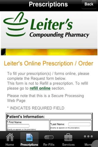 Leiter's has a pharmacist on call 24/7 for any questions. The pharmacy has a complete shipping department. It can ship Federal Express, priority mail or express mail.
