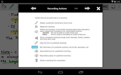 Lensoo Create turns your Android tablet into a virtual whiteboard with voice recording, video and smooth digital writing. Using Lensoo Create you can quickly share your ideas through email, Facebook, Twitter or LinkedIn from virtually anywhere. You can also download recordings on the website. Whether you are a teacher looking to instill knowledge, a student wishing to present your ideas or simply a person with an impressive skill to share, Lensoo Create is for you.