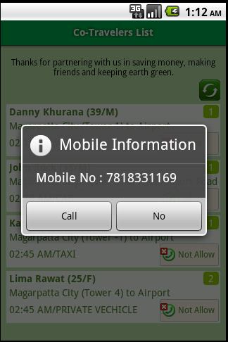 QUICK: Less than a minutes time you can share your travel details and access others. Confirm and CALL the one of our choice.