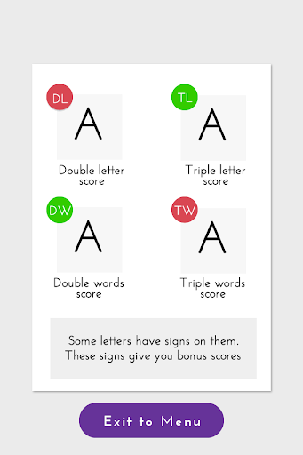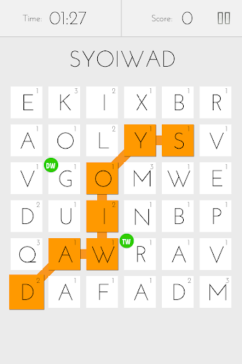 Find and swipe words in board. Make long words or use bonus tiles to clear extra letters from the screen. Letter game is a fast-paced and fun word game. Spell words by swiping your fingers across the letters on board. Some letters have signs on them. These signs give you bonus scores