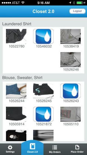 Closet 2.0: Digital closet of all items sent for dry cleaning.
