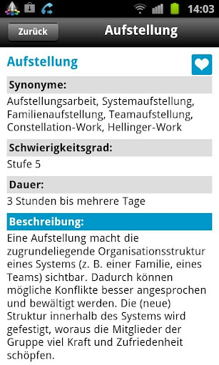Ob Prüfung, Wettkampf, Unternehmensführung oder Alltag - zu jedem Bereich gibt es erprobte Verfahren für mehr Gesundheit, Leistung und Lebensfreude. Mit dieser App wird das Lexikon der Mentaltechniken zu Ihrem persönlichen Taschenpsychologen. 16 Defizite und 16 Stärken, nach Themen geordnet mit sofort umsetzbaren Mentaltechniken. Die LITE-Version enthält eine Mentaltechnik pro Kategorie. Mit der Vollversion erhalten Sie über 150 Techniken!