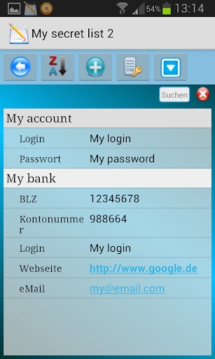 * Geschützte Listen mit 256 bit AES Verschlüsselung (Passwortsafe)